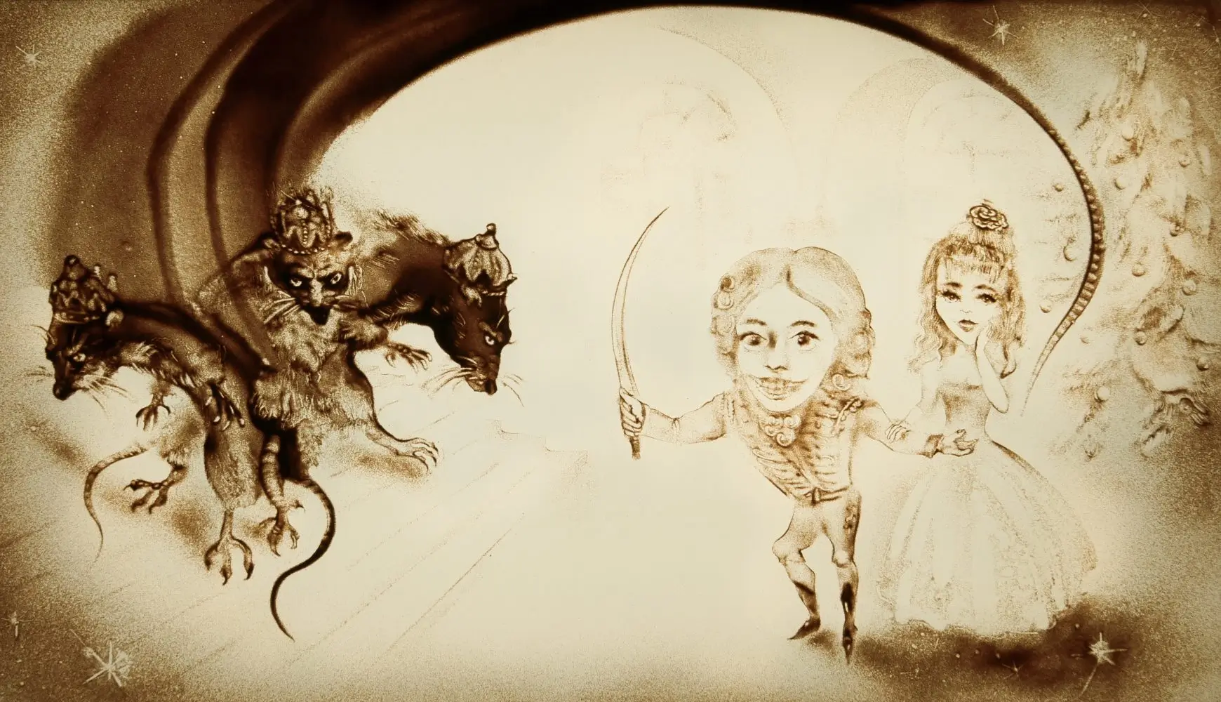 Wie durch Zauberhand versetzt die Sandanimation in eine fantastische Welt, in der der Zauber des Sandes und Tschaikowskys bezaubernde Musik eine Atmosphäre voller Erwartung auf ein Wunder schaffen. Die Sandbilder entführen in die Welt der kleinen Marie, in der der Nussknacker dem Mäusekönig gegenübertritt und nach seinem Sieg in einen wunderschönen Prinzen verwandelt wird. Dies ist nicht nur eine Aufführung, sondern eine fantastische Reise, bei der jedes Sandkorn und jede Note des Orchesters die Geschichte erzählt, dass Wunder immer nahe sind — man muss nur daran glauben.